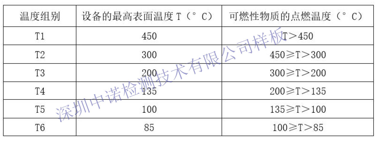 3、對于zui高表面溫度超過450 °C的II類Ex設(shè)備應(yīng)用攝氏溫度來標記zui高表面溫度,例如, 600 °C。